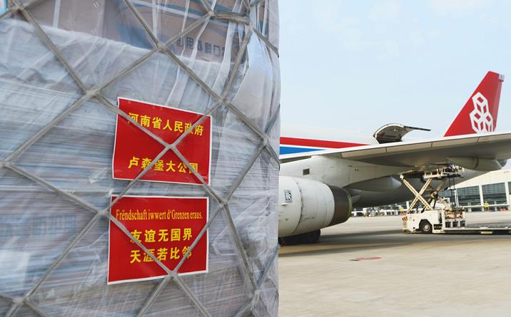 2020年2月,疫情爆發(fā)初期,盧森堡貨航和河南航投共同積極加入抗“疫”戰(zhàn)斗,除了為中國員工提供口罩、消毒棉片、防護(hù)服等物資支援外,還在原定的春節(jié)假期期間,加運了95噸醫(yī)療物資馳援中國抗“疫”一線,并根據(jù)國內(nèi)外市場的需要有序增加運力。當(dāng)年3月,河南省委、省政府為盧森堡緊急籌措了包括4500件醫(yī)用防護(hù)服、50萬只醫(yī)用外科口罩、5700只醫(yī)用N95口罩、10萬雙醫(yī)用手套、600只額溫槍、2萬瓶洗手液、1080副醫(yī)用護(hù)目鏡等在內(nèi)的首批醫(yī)療物資,并通過鄭州—盧森堡貨運航班直接運抵盧森堡。鄭盧“空中絲綢之路”被盧森堡政府譽為“盧森堡及其他歐洲地區(qū)的生命線,是一條雪中送炭的空中橋梁?!痹谶@條絲路的連接下,豫盧雙方成為共建共享、休戚與共的“一家人”。