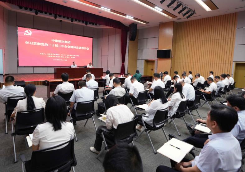 8月29日,按照省委和省政府國資委黨委部署,中豫航空集團(tuán)舉行學(xué)習(xí)貫徹黨的二十屆三中全會(huì)精神宣講報(bào)告會(huì)。省國資系統(tǒng)宣講團(tuán)成員,中豫航空集團(tuán)黨委書記、董事長張明超作宣講報(bào)告,黨委副書記、總經(jīng)理、副董事長柳建民主持會(huì)議,集團(tuán)領(lǐng)導(dǎo)班子在鄭成員、中層管理人員、青年員工代表約300人參會(huì)。