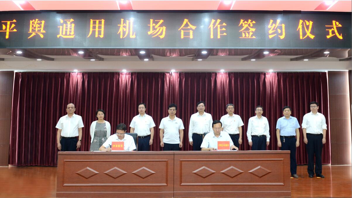 9月15日,河南航投通用航空投資有限公司(以下簡(jiǎn)稱航投通航)與平輿縣人民政府簽署通用航空戰(zhàn)略合作協(xié)議。河南航投黨委書(shū)記、董事長(zhǎng)張明超,駐馬店市政協(xié)副主席張新領(lǐng)、平輿縣委書(shū)記張懷德等出席簽約儀式。