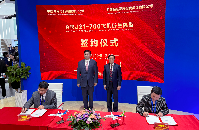 2月20日,在中國(guó)商用飛機(jī)有限責(zé)任公司(以下簡(jiǎn)稱中國(guó)商飛)黨委書記、董事長(zhǎng)賀東風(fēng)和河南航投集團(tuán)黨委書記、董事長(zhǎng)張明超的共同見證下,河南航投集團(tuán)子公司河南航投航空設(shè)備租賃有限公司(以下簡(jiǎn)稱航投租賃)與中國(guó)商飛在新加坡航展首日簽署了《飛機(jī)購(gòu)買意向書》(以下簡(jiǎn)稱意向書),雙方就國(guó)產(chǎn)ARJ21-700衍生機(jī)型達(dá)成購(gòu)買意向。