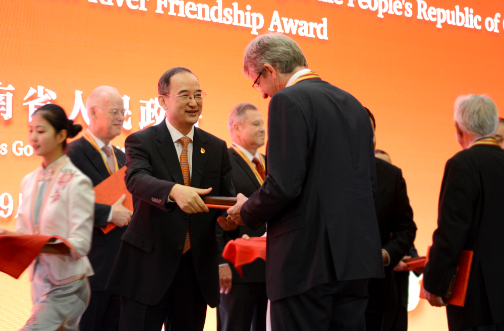 省委、省人大、省政府、省政協(xié)有關(guān)部門負(fù)責(zé)同志,華僑華人、港澳臺(tái)同胞代表等參加招待會(huì)。據(jù)悉,“黃河友誼獎(jiǎng)”是省政府為表彰對(duì)河南經(jīng)濟(jì)發(fā)展和社會(huì)進(jìn)步作出突出貢獻(xiàn)的國(guó)際友人、外籍專家、海外華人華僑和港澳知名人士而設(shè)立的最高榮譽(yù)獎(jiǎng)。自2000年起,省政府已先后為109人頒發(fā)了此獎(jiǎng)。