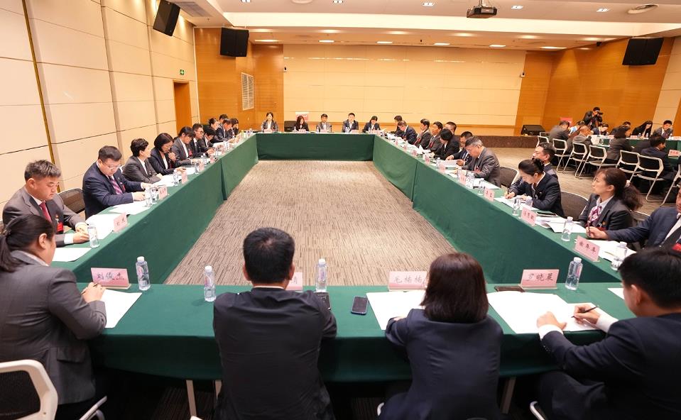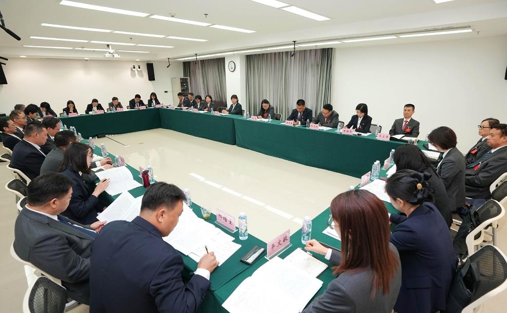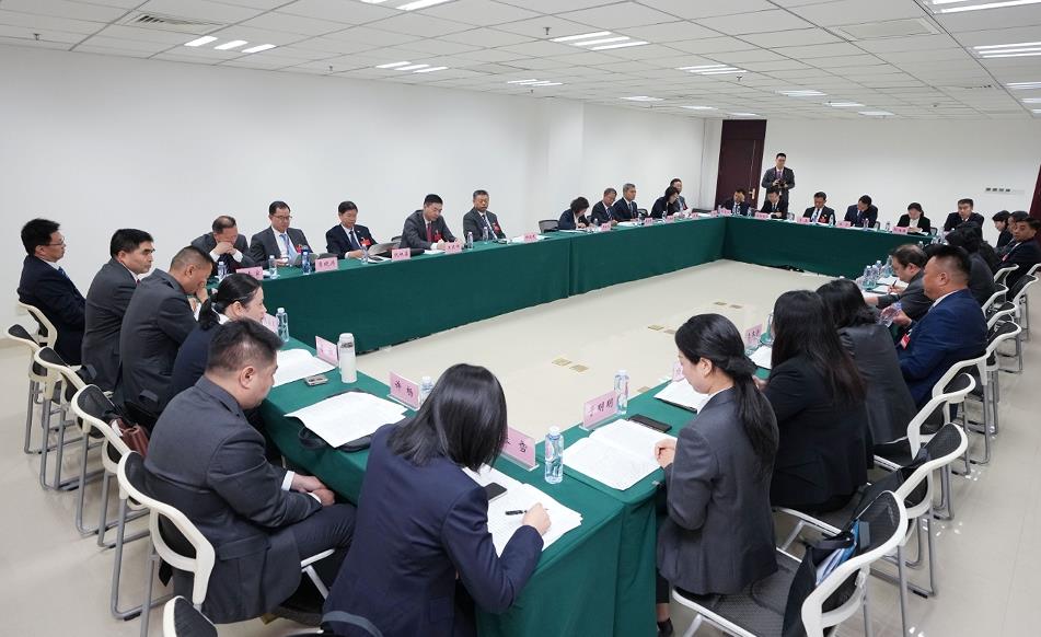 集團領(lǐng)導(dǎo)班子成員與代表們討論報告。