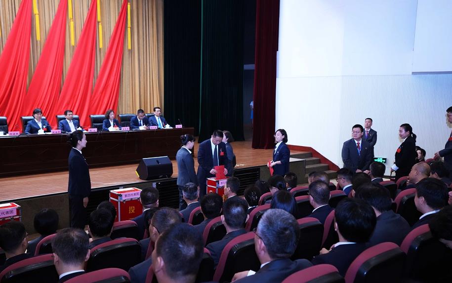 集團黨委書記、董事長張明超代表集團黨委向大會作報告,與會代表在現(xiàn)場認真聆聽。