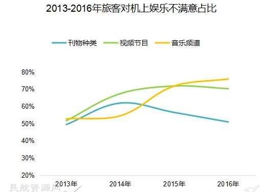 以上圖為例,音頻、視頻、旅客的滿意度一直在下降,不滿意度一直在上升?!熬退銠C上娛樂項目更新得再快,做得再好,不可能滿足每一個旅客的個性化需求。但是只要打通了一個環(huán)節(jié),把互聯(lián)網(wǎng)接上了,聊微信也好,聽QQ音樂也好,還是聽其他的音樂也好,那都是旅客自己的事情,旅客滿意度會得到最大程度的提升?!?